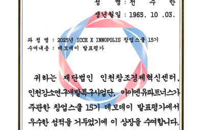 에코피디, 인천창조경제혁신센터 ‘창업스쿨 15기 데모데이 발표평가’ 대상 수상